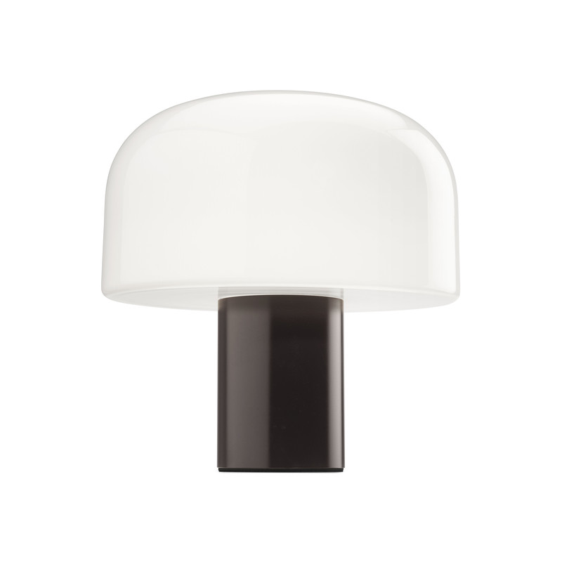 Lampe de table en verre soufflé opalin, conçe par Edward Barber et Jay Osgerby en 2024. Le verre soufflé triplex permet une diffusion uniforme, douce et chaleureuse de la lumière.