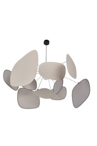 Suspension XL 1 x ampoule E27, inspiration mobile, avec écrans en lin couleur bouleau. Diamètre 110cm.